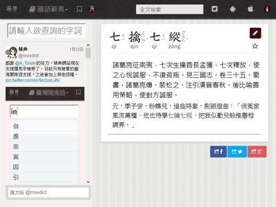 共收錄十六萬筆國語、兩萬筆臺語、一萬四千筆客語條目,每個字詞都可以輕按連到說明,並提供 Android 及 iOS 離線 App。來源為教育部...