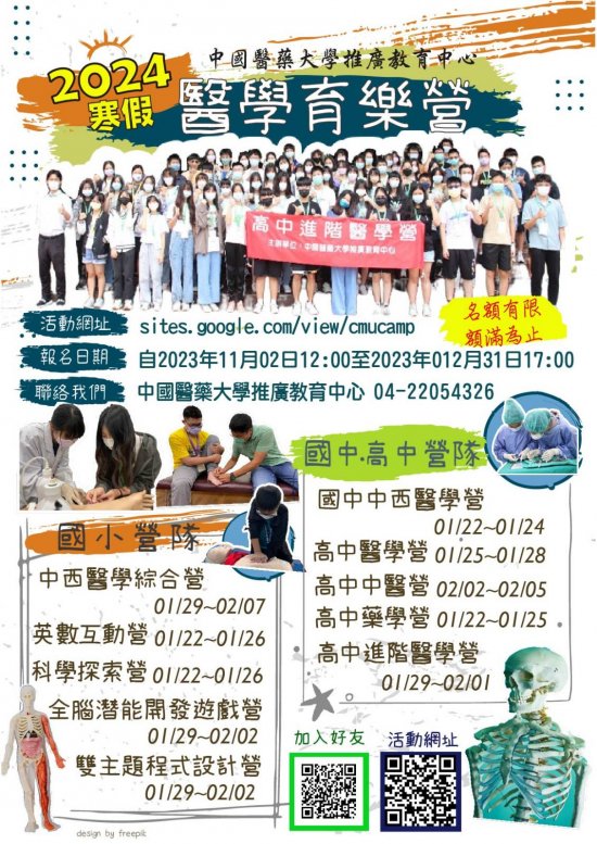 2024寒假醫學育樂體驗營活動開跑啦~不管你是小朋友還是大朋友,這裡的營隊都能滿足你。 |