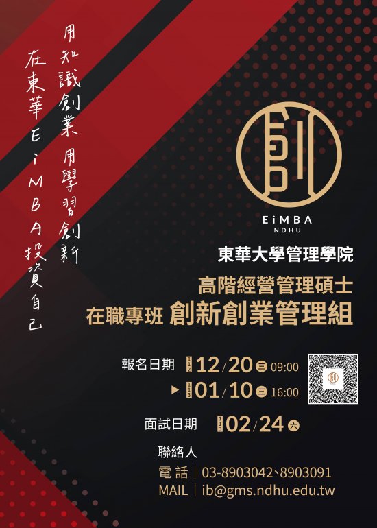 二、招生簡章已在該校網頁公告,不另發售紙本簡章,歡迎至國立東華大學招生資訊網(https://exam.ndhu.edu.tw/p/406- 1104-214122,r2366.php)下載。