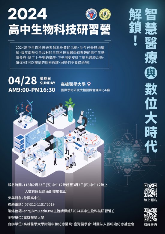 2) 高雄醫學大學辦理「2024年高中生物科技研習營-解鎖!智慧醫療與數位大時代」活動海報.jpg