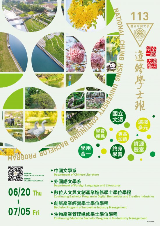 四、 | 相關資訊請詳見本校招生資訊網(https://recruit.nchu.edu.tw/)。 |
