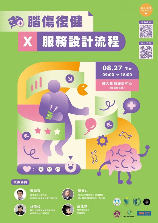一、 | 活動目的:本活動由教育部「跨領域教師發展暨人才培育計畫」補助辦理,本工作坊集結運動生理、設計思考創新引導、使用者經驗設計、故事思維設計等跨域師資,帶領學員探討中風症狀、患者復健需求及流程,並以輔大創意設計中心的智能眼鏡腦傷居家復健「人機互動式復健系統」美國、台灣發明專利為例,作為科技輔助復健的介紹;藉由顧客旅程地圖工具,了解中風患者在復健過程中可能遇到的各種問題,並透過服務設計優化復健流程。 |