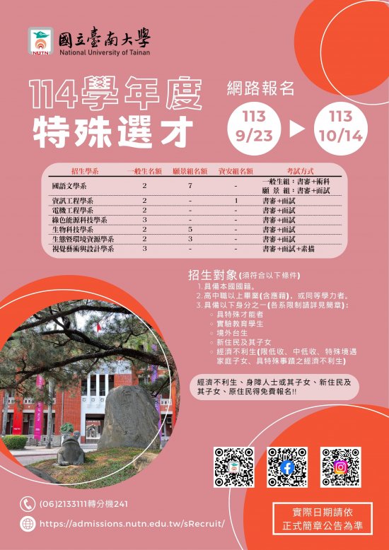 1) 國立台南大學114學年度學士班特殊選才招生資訊海報.jpg