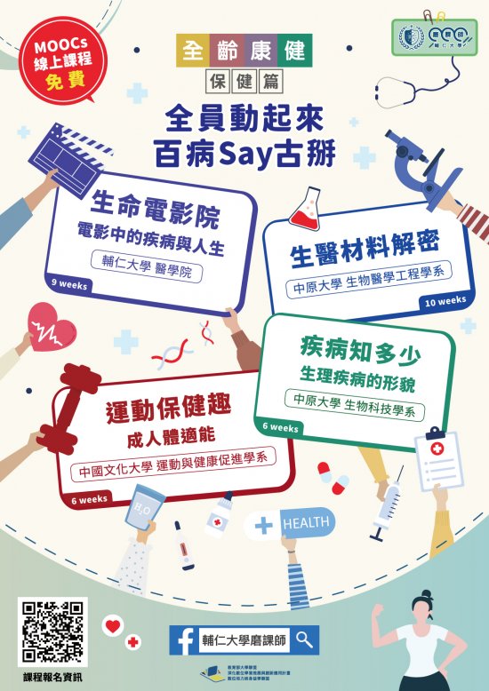 一、 | 因應「大學聯盟深化數位學習推展與創新應用計畫-數位培力終身益學聯盟」所發展規劃之「全齡康健系列保健篇」系列課程。 |