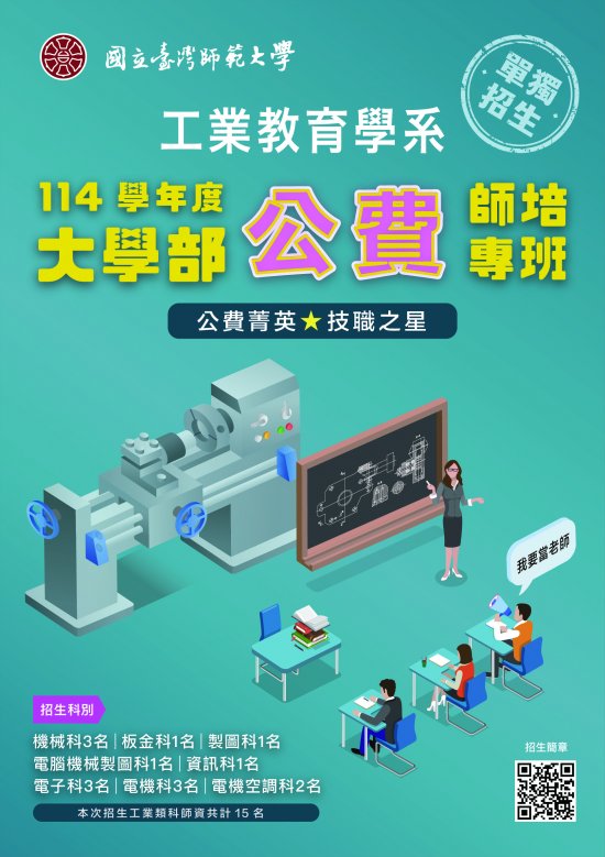 1) 國立臺灣師範大學「114學年度工業教育學系學士班公費專班單獨招生」招生海報.jpg