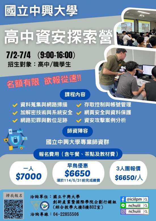 五、 | 課程費用:114年5月31日前報名並完成繳費者享有早鳥優惠價新台幣6,650元整。 |