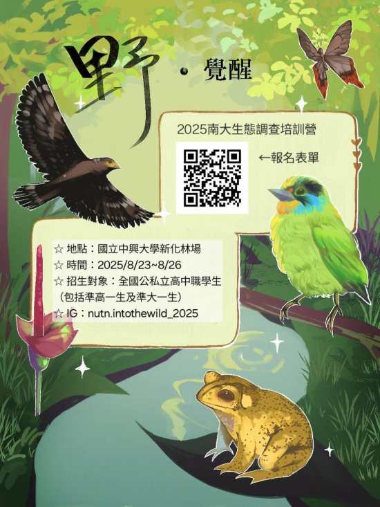 (五) | 活動詳細資訊請參考「野•覺醒生態調查培訓營」海報與議程表(如附件)。公務電子信箱:nutneco.frog@gmail.com。 |