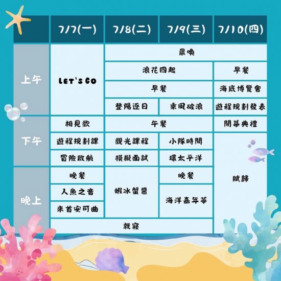 三、 | 營隊日期:114年07月07日(星期一)至114年07月10日(星期四) ,共四天三夜。 |