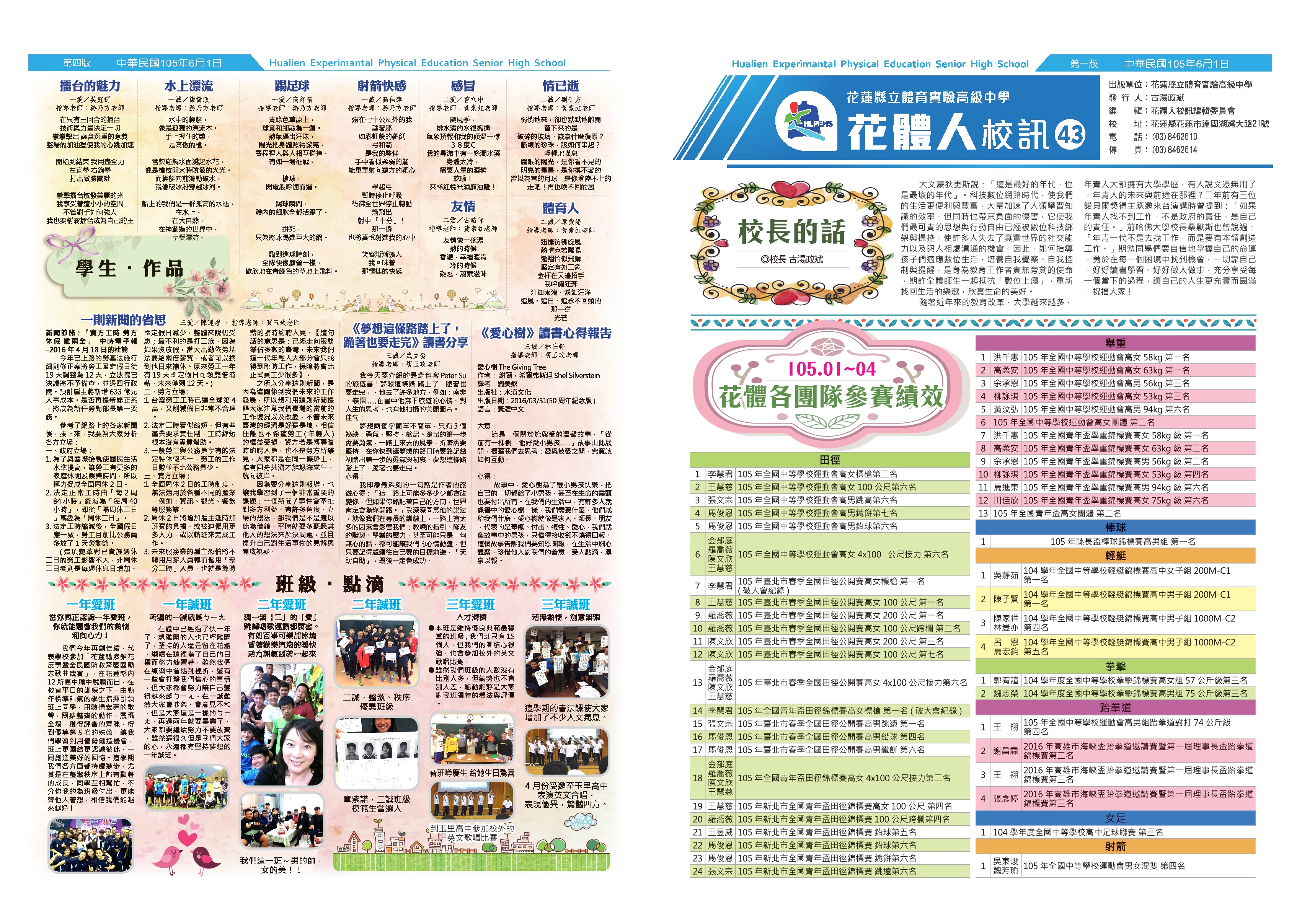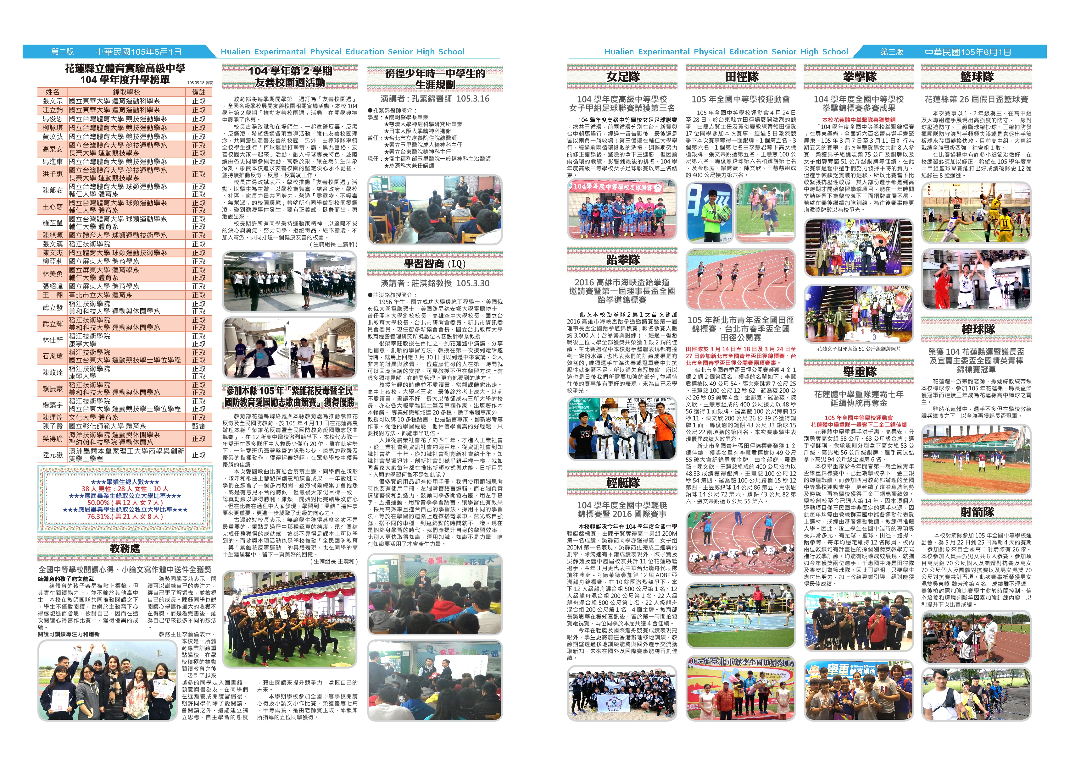 花蓮縣立體育高級中等學校全球資訊網電子報第 43 期