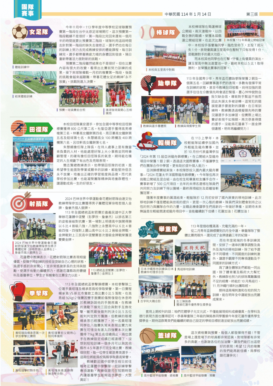 花蓮縣立體育高級中等學校全球資訊網電子報第 60 期