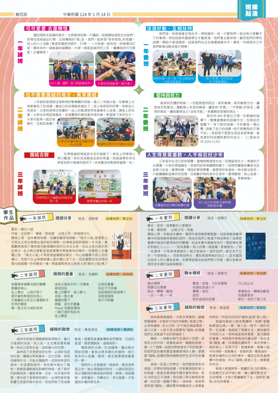 ◎ 訂閱網址:http://www.hpehs.hlc.edu.tw ◎ 發報時間:2025-01-14