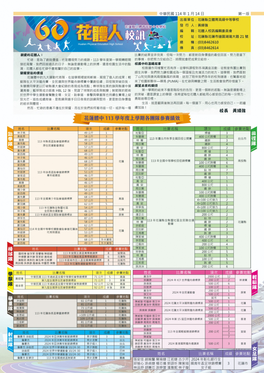 花蓮縣立體育高級中等學校電子校刊第 60 期