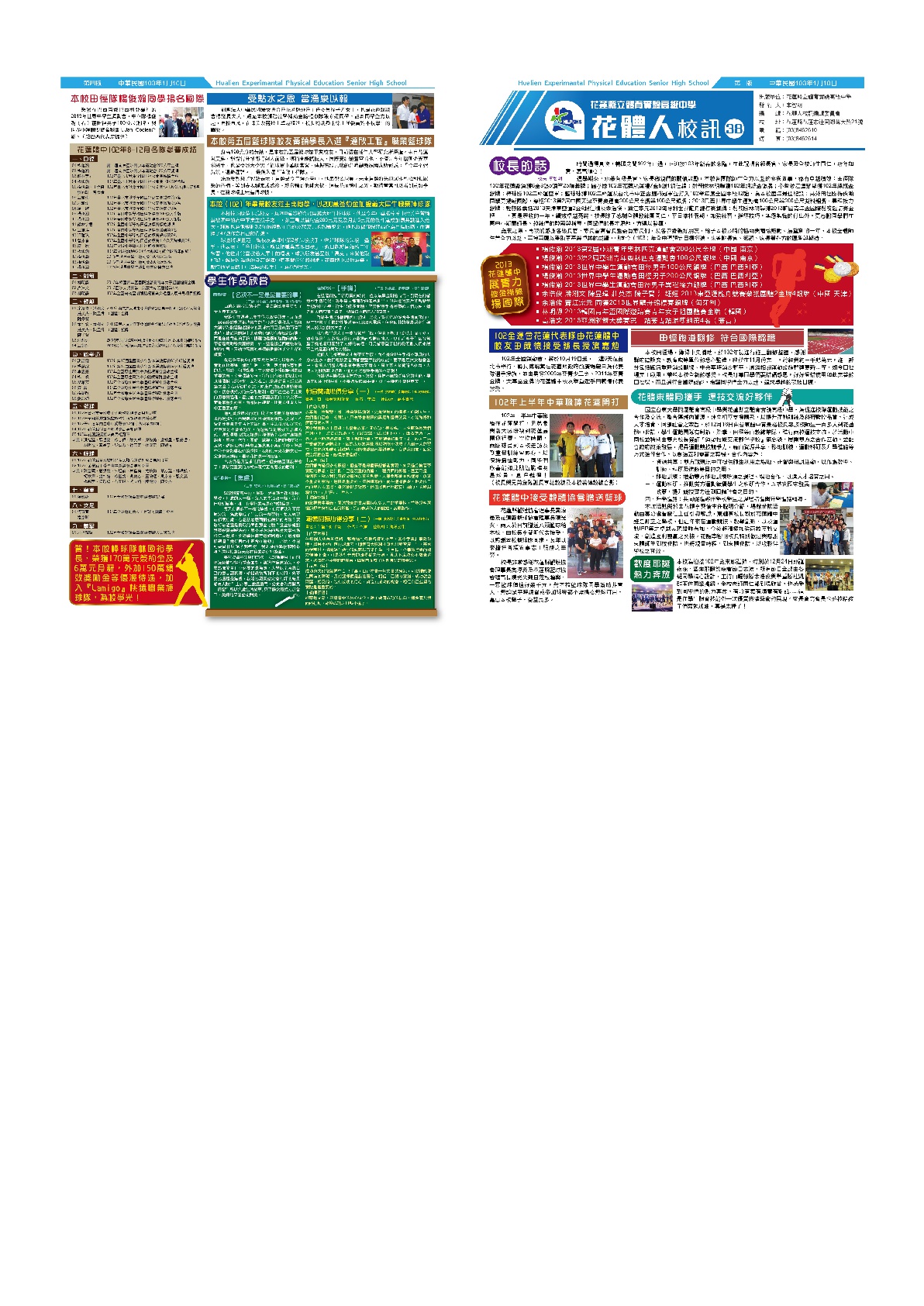 花蓮縣立體育高級中等學校全球資訊網電子報第 38 期
