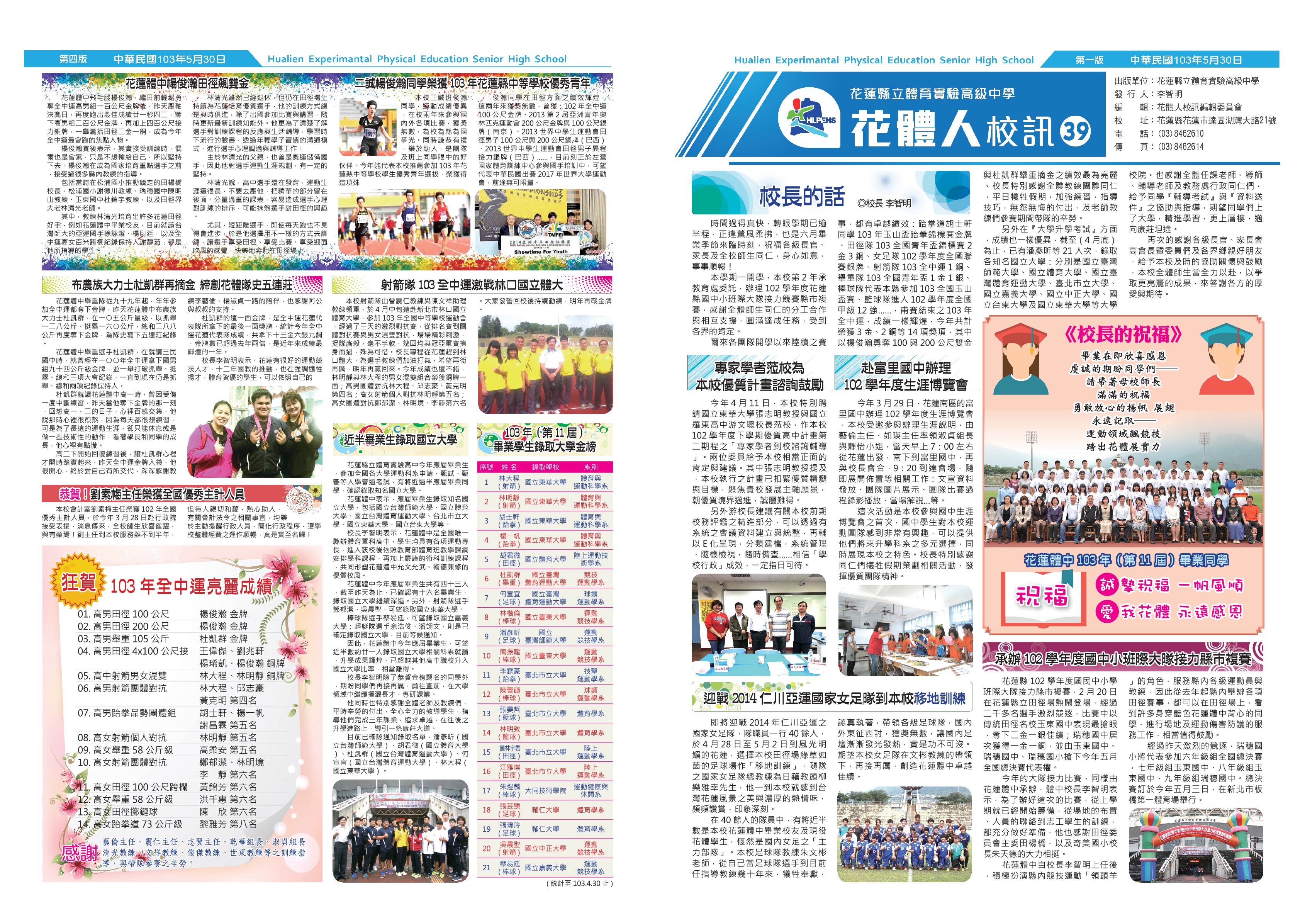 花蓮縣立體育高級中等學校全球資訊網電子報第 39 期
