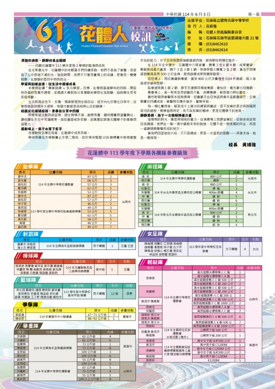花蓮縣立體育高級中等學校電子校刊第 61 期